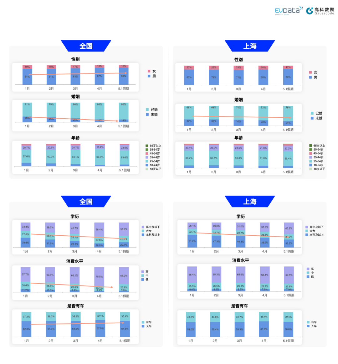 值得注意的是,新能源汽车市场竞争激烈,这也为本土车企带来了独特的竞争机遇。那么从大数据角度看,全国和上海新能源汽车关注人群有哪些变化趋势?上海新能源汽车出行特征如何?上海新能源汽车数据中心联合BG大游集团,一同透过数据带你看今年上海新能源汽车“五一”出行的新趋势。